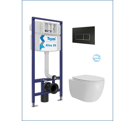 Инсталляция с унитазом Teymi комплект 5 в 1 унитаз подвесной безободковый Lori Vortex кнопка черная / хром F15835 F15835 ЦБ-00304328