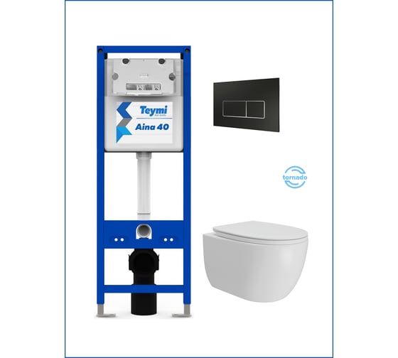 Инсталляция с унитазом Teymi комплект 5 в 1 унитаз подвесной безободковый Lori Vortex кнопка черная / хром F16917 F16917 ЦБ-00303923