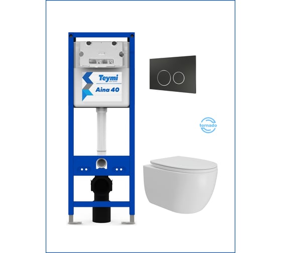 Инсталляция с унитазом Teymi комплект 5 в 1 унитаз подвесной безободковый Lori Vortex кнопка черная / хром F16923 F16923 ЦБ-00303243