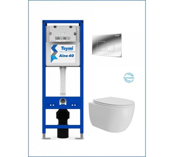 Инсталляция с унитазом Teymi комплект 5 в 1 унитаз подвесной безободковый Lori Vortex кнопка хром F16929 ЦБ-00303921