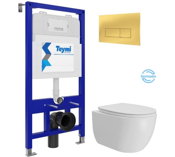Инсталляция с унитазом Teymi комплект 5 в 1 унитаз подвесной безободковый Lori Vortex кнопка золото F16149 F16149 ЦБ-00304336