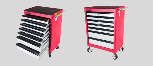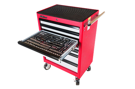 Организованное и безопасное хранение У тележки семь выдвижных ящиков – пять плоских и два глубоких. Открываются полностью, что облегчает доступ к инструментам. Оборудованы быстросъемными полозьями – легко выдвигаются и вынимаются. На каждом ящике предусмотрен фиксатор, который предотвращает его случайное открытие во время передвижения тележки. Центральный замок и система блокировки защищают содержимое от нежелательного доступа. Есть ложементы для аккуратного хранения инструментов.