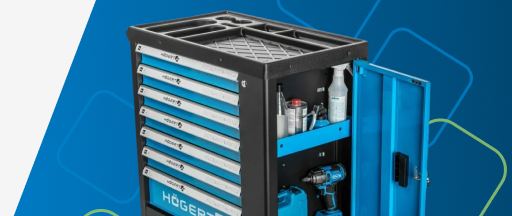- Боковой шкафчик с полками и дверцей Для хранения жидкостей, пневмо- и аккумуляторного инструмента