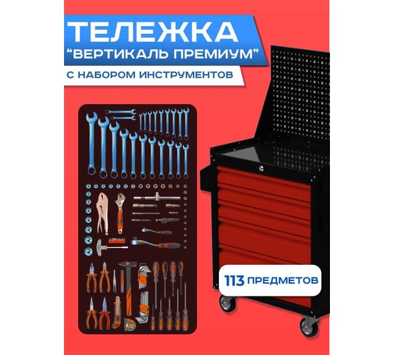 Инструментальная тележка ILIKPRO Вертикаль Премиум с комплектом инструмента 113 поз, чёрно-красная SIDSLS-311.855.678.000.9005-3020