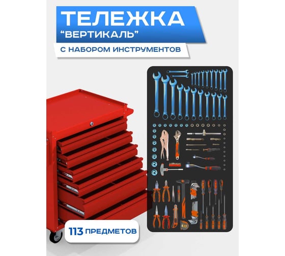 Инструментальная тележка ILIKPRO Вертикаль с комплектом инструмента 113 поз, красная SIDLS-42.855.678.000.3020