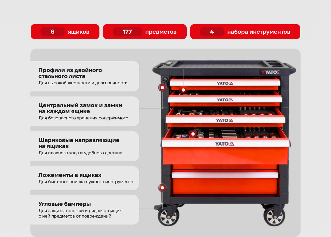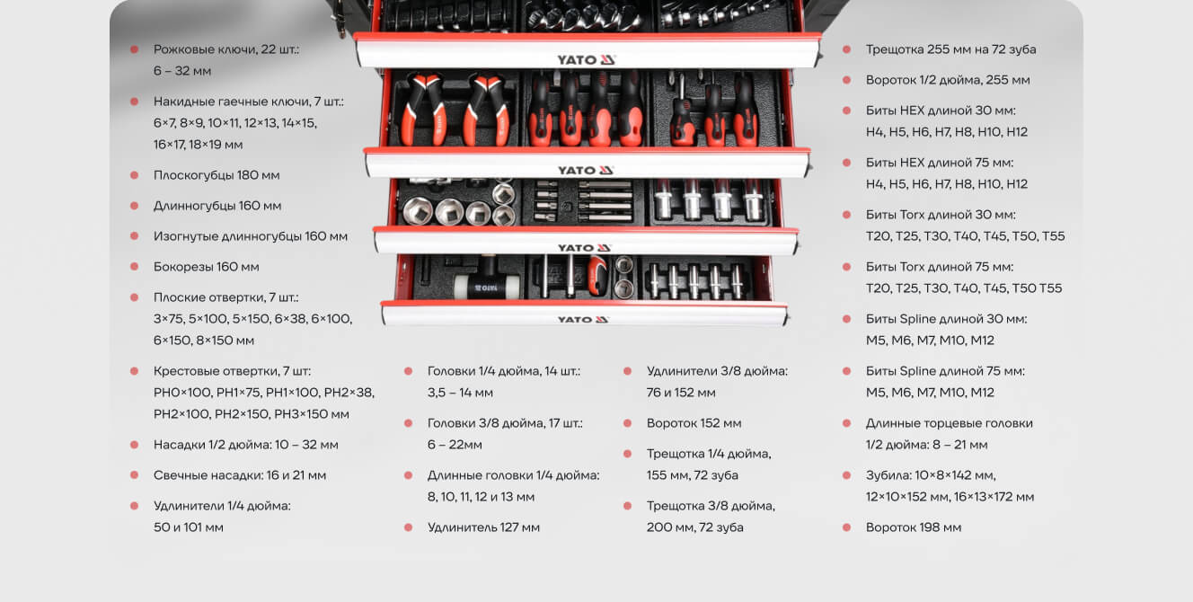 Организуйте рабочее место профессионально — выберите YATO YT-55300 для надежного хранения и удобного использования инструментов.