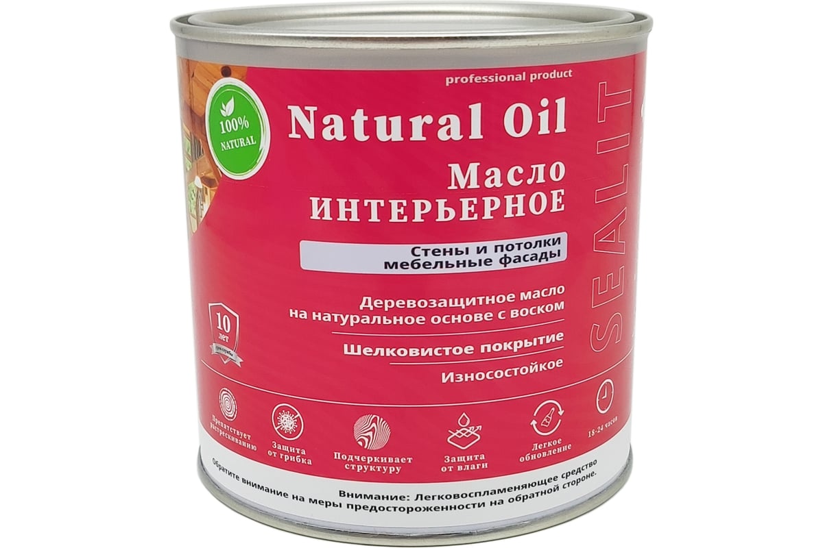 Масло интерьерное Sealit универсальная покрытие из натуральных масел. Рекомендуется для окраски всех впитывающих поверхностей внутри помещения, таких как деревянные стены, потолки, полы, лестницы, мебели, а также пробка и ОСБ.