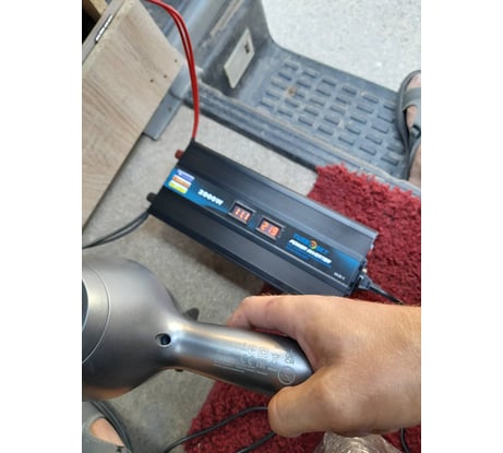 Выполняет свою функцию, но важно понимать что бы этот инвертор выдал 2000 ватт необходимо, что бы помимо 12 вольт ёмкость аккумулятора была в идеале 200Ач в ином случае он будет просто выключаться уходя в защиту, в моей машине ёмкость аккумов 150Ач и бытовой фен на полной мощности он естественно не запитает, попросту не откуда, но на максимальном потоке воздуха и среднем нагреве потока вполне работает, а это 1800 ватт необходимой мощности тока, но вполне себе работает от 150Ач, просто высадит в таком режиме их минут за 40-50, в общем необходимо отдавать себе отчёт, что от обычного аккума легкового авто в 55Ач он в принципе не выдаст и 900ватт, но я не электрик если что. На фото где входное напряжение 10,5 вольт максимальный режим работы фена, запуск двс особо на ситуацию не влияет генератор у меня на 140Ач. За эти деньги (7100) это лучший вариант, нагружать его на постоянной основе собираюсь 1000ваттами посмотрим на сколько долго протянет.