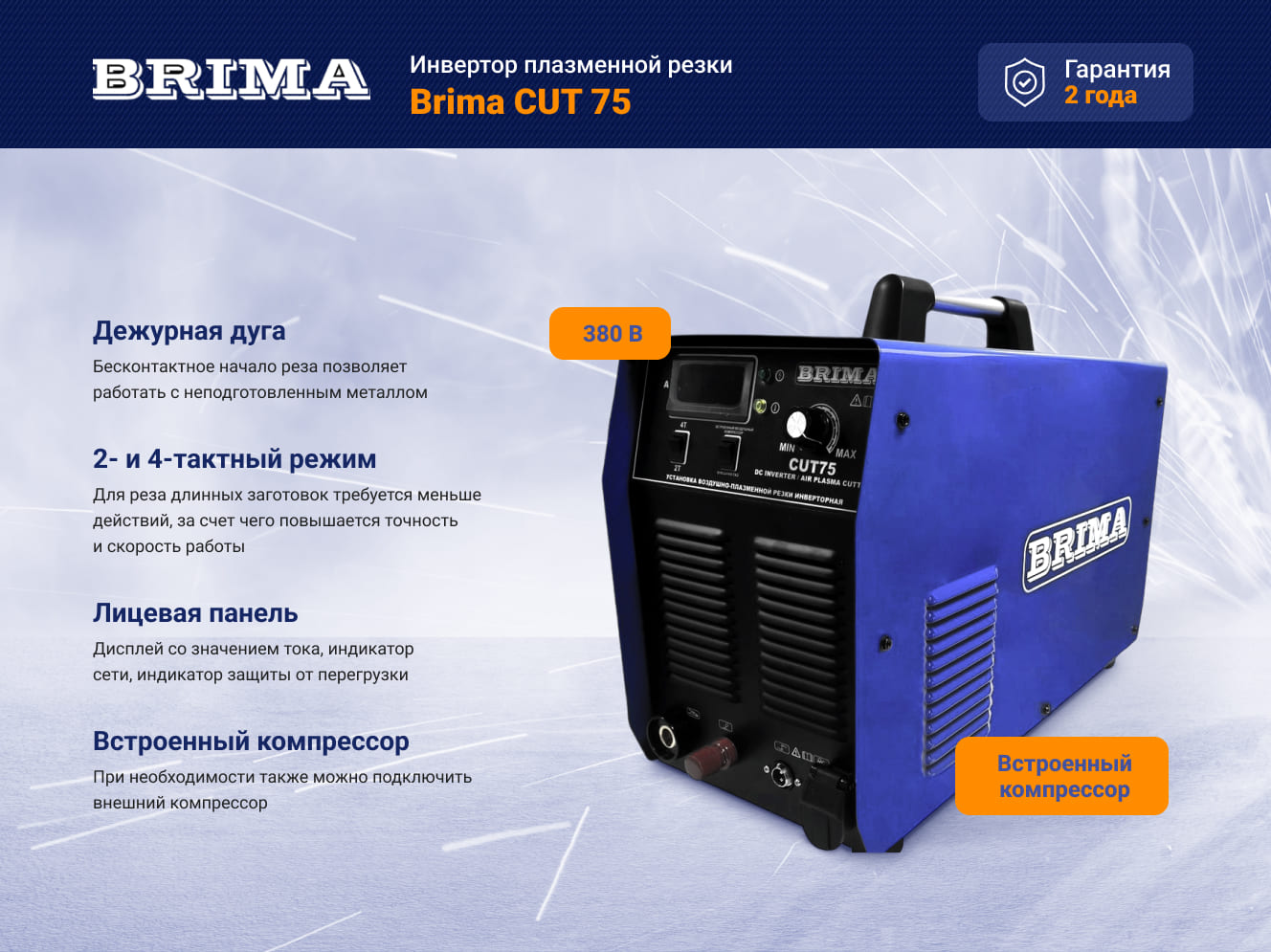 Инвертор плазменной резки Brima cut 75 с компрессором НП000001376