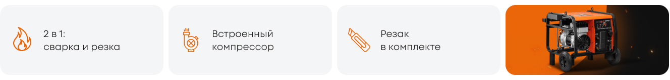 Возможность включения встроенного компрессора для продувки либо подключения к пневмо -инструменту с производительностью до 150 л/мин.