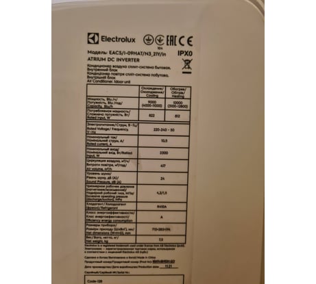 После первого включения проработал 30 сёк. и умер. Ошибка EH 03. Брак мотора внутреннего блока. Ремонтировали месяц, разобрали внутренний блок полностью, хорошо не пришлось демонтировать, хотя, мастер сказал, что данная процедура осуществляется уже в сервисе, трахался он пол дня. Проблема производителю, видимо, известна, так как присылают ремкомплект в сборе: мотор+управляющая плата. Вопрос к контролю качества. Данная модель сделана в Китае. Electrolux уже не тот. Возьмите лучше Lessar. Тоже Китай, но заточены именно под кондеи и проблем с ними нет.