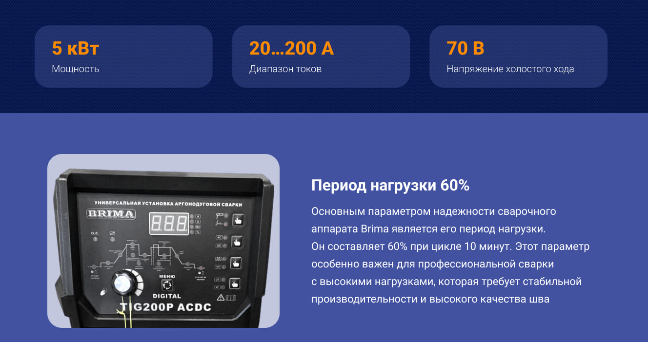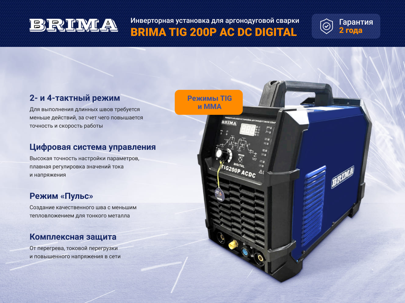 Преимущества Brima TIG 200P AC DC DIGITAL БП-00000238