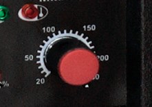 - Имеет регулятор (потенциометр) сварочного тока, плавно изменяющий значения от 20 до 250 А, с четкой шкалой и понятным символьным обозначением.