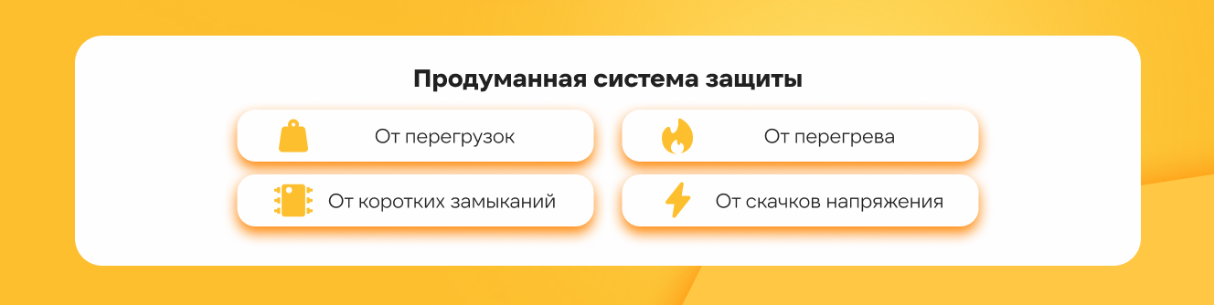Защита от перегрузки: встроенная система автоматически отключает генератор при превышении допустимой нагрузки, предотвращая поломки и обеспечивая безопасность. Устойчивость работы: конструкция генератора и амортизаторы гасят вибрацию, что продлевает срок службы и обеспечивает комфортную эксплуатацию. Универсальность: способен обеспечить энергией основные бытовые приборы, делая его идеальным решением для аварийного электроснабжения.