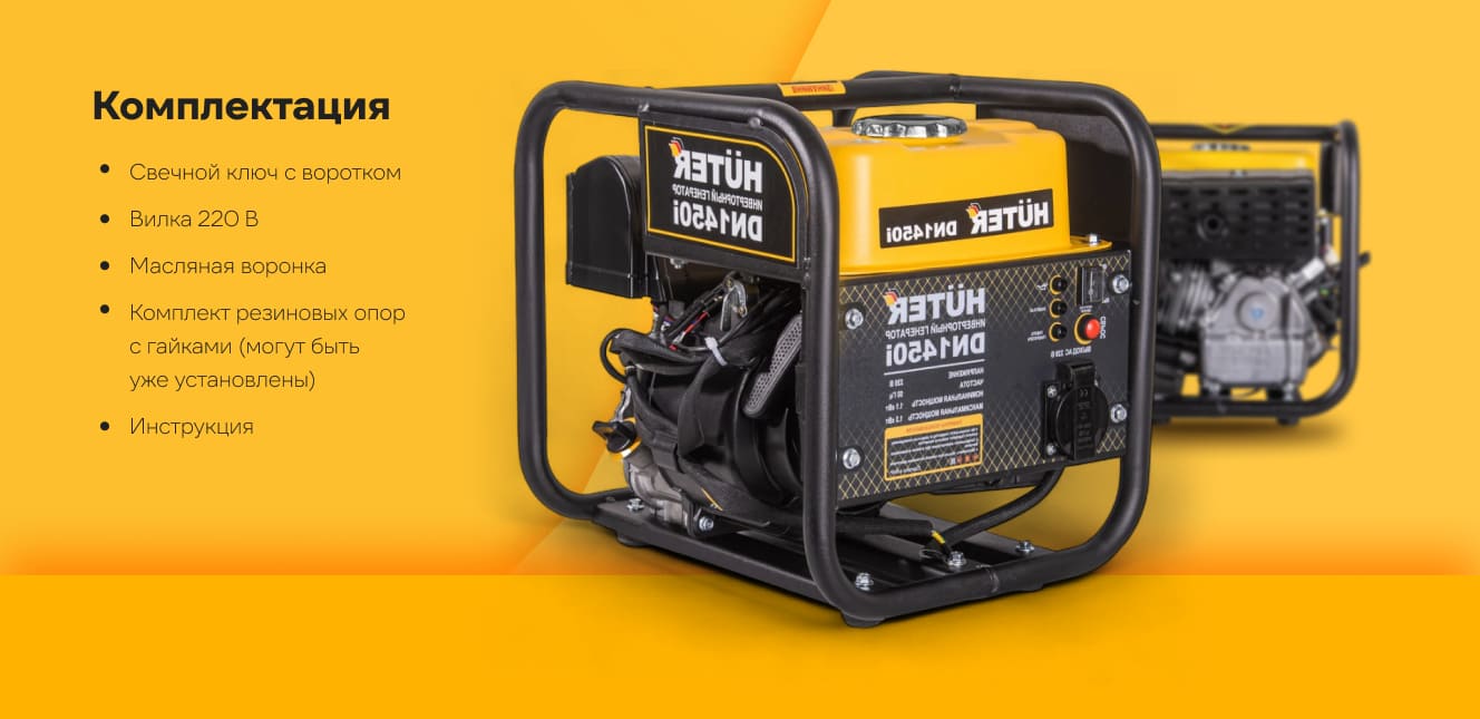 DN1450i Huter отличается компактными размерами и небольшим весом, что делает его удобным для транспортировки. Он легко помещается в багажник автомобиля или может быть перенесен вручную.