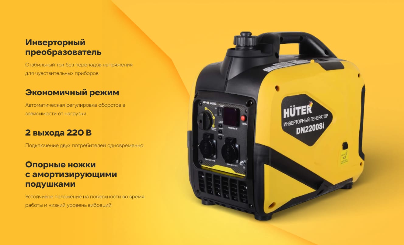 Инверторный генератор DN2200Si Huter — предназначен для подачи питания в ситуациях, когда централизованное электроснабжение отсутствует или временно прервано. Генератор станет источником качественной электроэнергии в походах, на дачных участках, при выполнении строительных работ или аварийных ситуациях.