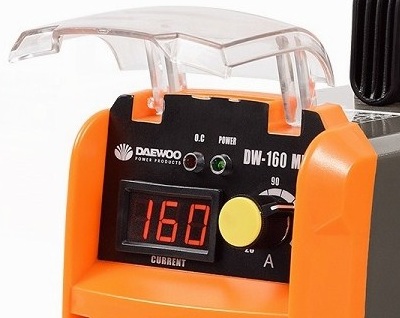 Инверторный сварочный аппарат Daewoo DW160 надежно соединяет различные металлические детали и заготовки методом ручной электродуговой сварки и наплавки. Устройство подключается к электрической сети напряжением 220 В частотой 50 Гц посредством интегрированного сетевого кабеля с вилкой. Благодаря инверторной технологии инвертор при достаточной мощности обладает небольшими размерами, а также малым весом, что удобно при хранении и транспортировке. Оборудование исключительно просто в использовании, с его запуском и настройкой справится даже неопытный сварщик. Наличие цифрового дисплея позволяет оператору с точностью настроить параметры требуемого тока - от 10 до 160 А.