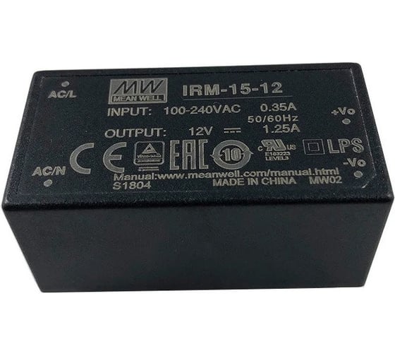 Вопросы и ответы об источнике питания Mean Well IRM-15-12 AC/DC Т02163788