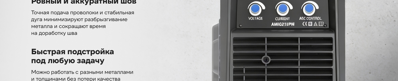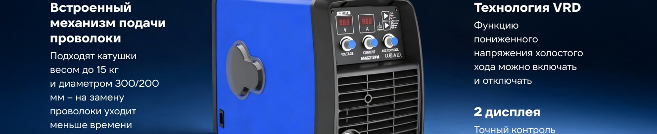 Многофункциональный инверторный сварочный аппарат AMIG210PM может использоваться для MIG/MAG и порошковой сварки. Обладает функцией STICK, Lift TIG. Сварочный аппарат обладает отличными статико-динамическими характеристиками.