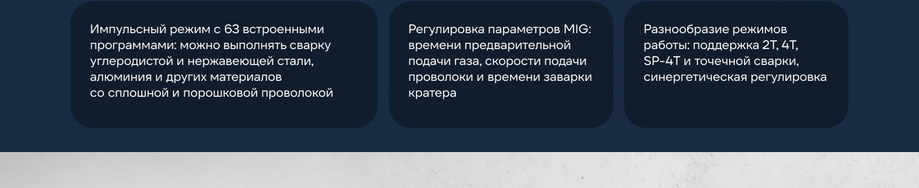 - Стабильное зажигание дуги и отжиг конца проволоки после окончания сварки