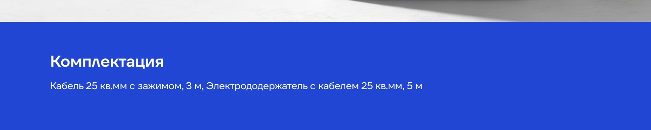 - Электрододержатель с кабелем 25 мм², 5 метров