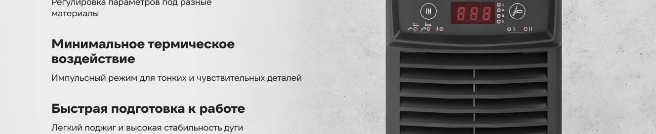 Источник питания предназначен для сварки на постоянном и переменном токе: ручная дуговая сварка, ручная аргонодуговая сварка, ручная аргонодуговая сварка в импульсных режимах, используемых для сварки сталей, нержавеющих сталей, меди, титана, алюминия и его сплавов.