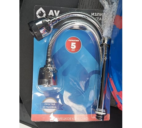 Товар поставляется в пакете. Фото в блистере неверное. Длина обозначена неправильная. Общая длина 44,5 см, жёсткая часть 16 см, посадочный диаметр 18 мм. Гайка без шлицов под ключ. Коротковат по сравнению со старым изливом (50 см), более легкий по весу. Сколько и как прослужит будет видно, дополню.