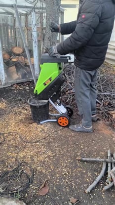Выполняет все заявленные характеристики, перерабатывает все что пролезает. Ножи не менял. Получается хорошая мелкая щепа, которую использую для деревьев и в качестве мульчи на грядках.