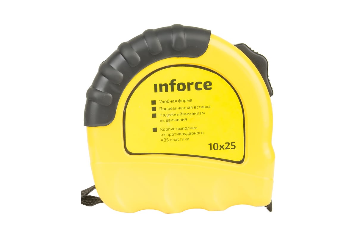 - Корпус измерительной рулетки Inforce 10х25мм 06-11-04 изготовлен из противоударного АБС-пластика;