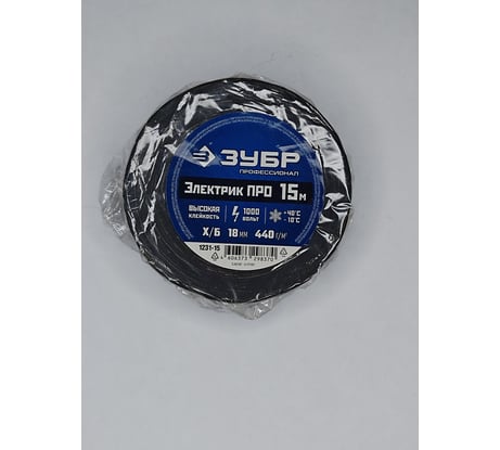 Изолента Х/Б ЗУБР Электрик Про 15 м, черная 1231-15