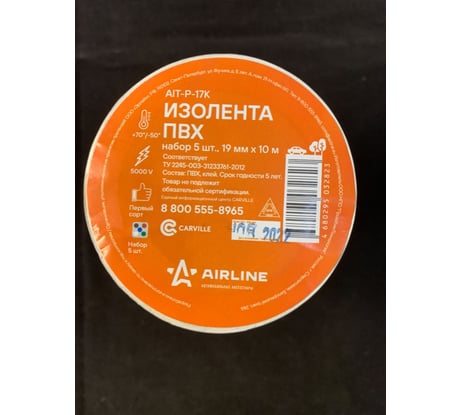 Отзывы об изоленте ПВХ Airline набор 5 шт. син.чёр.кр.зел. бел. 19 мм х 10 м AIT-P-17K