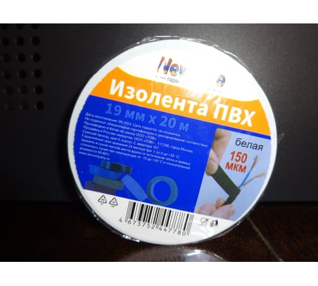 Изолента ПВХ белого цвета, ширина - 19 мм, намотка - 20 м.