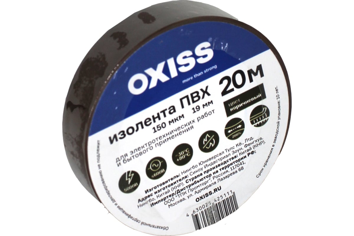 Изолента ПВХ Oxiss 150 мкм 19мм х20м, коричневая 4630025425111