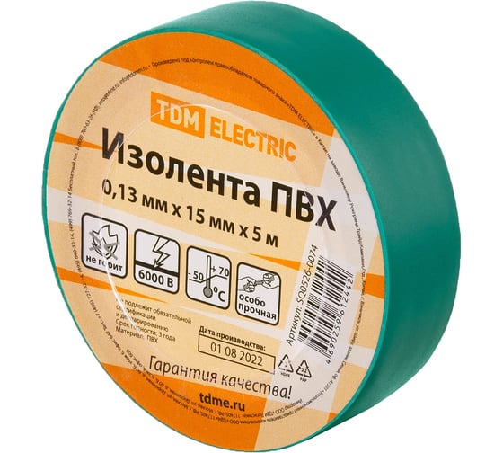 Вопросы и ответы об изоленте пвх TDM ELECTRIC 0,13x15 мм, зеленая, 5 м SQ0526-0074