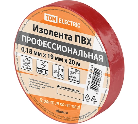 Вопросы и ответы о профессиональной изоленте TDM ELECTRIC ПВХ, 0,18x19 мм, красная, 20 м SQ0526-0063