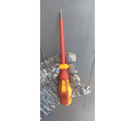 Хорошая отвёртка, использование в домашних цела с электрикой, удобная ручка, жало хорошо держит шурупы.