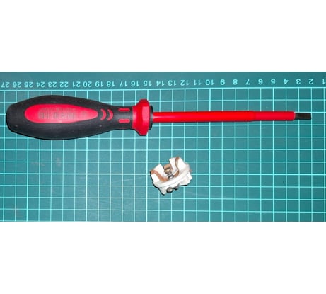 Давно хотел приобрести такую отвертку, но считал её слишком дорогой покупкой, которая имеет смысл только для профессиональной работы. Раньше ремонт электрики доверял мастерам, но теперь появилось больше времени и стимула делать всё своими руками. Это позволяет применить свои инженерные навыки. Единственное самоограничение — затраты на такое хобби. Ситуация, которая, на мой взгляд, оправдала эти затраты, такова. В доме серии II-14 1964 года вся проводка из алюминия, и этому алюминию 60+ лет. Части розеток и выключателей — столько же.Осмотр состояния электроустановочных изделий (розеток, подпотолочных и настенных выключателей, цокольных патронов, светильников), который, конечно же, надо было делать раньше и чаще, показал интересное: похоже, что мастера, за небольшим исключением, пренебрегали использованием качественных переходников и обжимов, что усугубляло проблемы с качеством электрических соединений и проводкой. Решение лежало на поверхности — демонтировать старье, заменить новым. Приглашенные мастера были еще более радикальны — сменить всю проводку. Тут уж покупка такой отвертки мне совсем дешёвой показалась. Конечно, бокорезы и мусорка — наше все, но я решил сохранить некоторые старые розетки и керамические патроны для ламп, которые имеют много нужных и работающих деталей, которых нет в современных аналогах. Современные изделия упрощены и недолговечны. Вопросом, а насколько хватит ремонта из современных материалов, я решил не задаваться, и заказал изолированную шлицевую отвертку 5,5 х 1,0 мм CIMCO. Заказу предшествовало небольшое приключение или даже квест. Во-первых, сюрпризом для начинающего электрика-предпенсионера оказалось наличие напряжения (благополучно, впрочем, заранее выявленного тестерами Fluke T150 и KBT KT100), на нулевом проводе даже и при отключенном (выглядящем как отключенным) автомате света и розеток в межквартирном щитке. Во-вторых, оказалось, что электроарматура не всегда разбирается так легко, как раньше. Некоторые детали не поддавались разборке. Новые купленные по сходной цене плоскошлицевые отвертки соскальзывали или закручивались и ломались о старые ржавые винты. С советскими приржавевшими винтами справлялись отвертки того же времени и места изготовления и набор с битами B&D примерно 2005-07 годов выпуска. Было решено обезопасить себя от сюрпризов диэлектрическим ковриком и защищённой отверткой. Отвертка оказалась удобной: шлиц не сминается, рукоятка с упором для большого пальца и шестигранный обод помогают не только надежно держать инструмент, но и помогать себе гаечным ключом аккуратно поддавливать винт по и против часовой стрелки, постепенно подбираясь к страгиванию его с места вкупе с проникающей смазкой и средством для снятия окислов с контактов. Большой плюс этого приобретения — возможность что-то делать даже при наличии напряжения на нулевом проводе, с соблюдением предосторожностей.