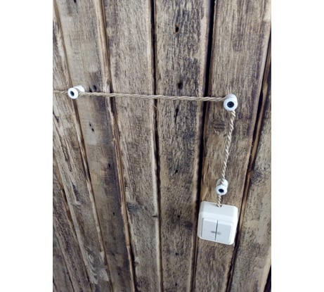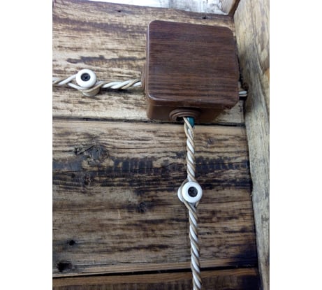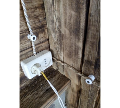 В бане провода в стиле ретро, использовали керамические. Не хватило немного на предбанник. Решили купит эти пластиковые, очень недорого в сравнении с керамикой. По своему виду они не отличаются, надеюсь со временем не пожелтеют