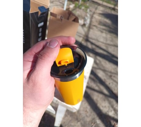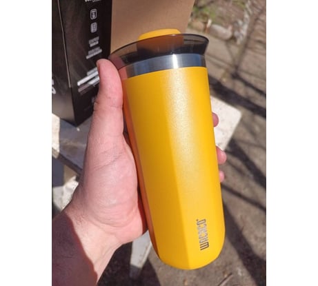 Качественная термокружка. Брал на дачу, очень люблю пить горячий чай в холодное время года. Да и цвет понравился, он позитивный. Кружка не совсем жёлтая, скорее цвета горчицы с мёдом. =)