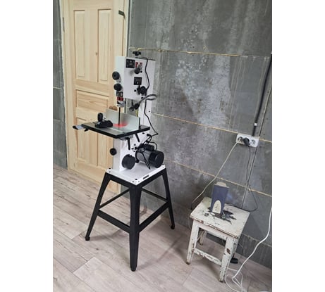 Супер вещь. Если нравятся ролики в интернете с фигурной вырезкой, то это самое оно. Есть ряд нюансов с настройкой ленты ( в начале потерпел невероятное фиаско, пока натягивал ленту после покупку, так как слишком уменьшил высоту реза, что привело к смещению ленты). Стол не очень большой но можно делать красивые и полезные вырезы. Можно ставить на стол, но лучше с фиксацей, чтобы не было смещения по поверхности. На фото есть держатель для струбцин и отдельный дря шуроповерта и винтоверта, которые сделаны исключительно данном станке.