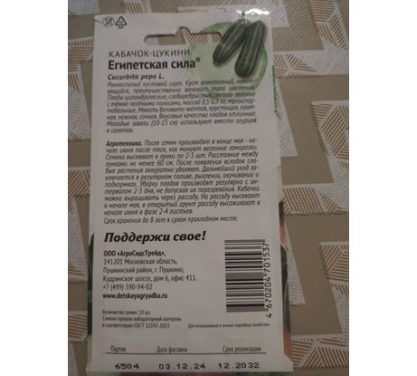Кабачок-цуккини Агросидстрейд Египетская сила 10 шт ПАТРИОТ 129127