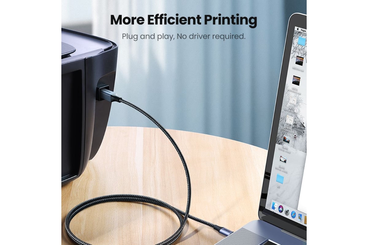 Кабель для принтера Ugreen US370 (45034) USB-C to USB-A Printer Cable. Длина: 1м. Цвет: черный 45034_