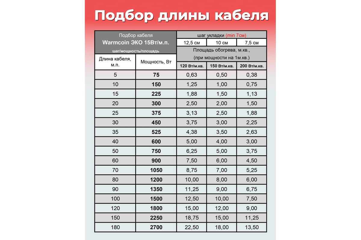 Двухжильный кабель Warmcoin ECO ЭКОНОМ 15Вт/м 50м.п. Нагр каб UNIVERSAL ЭКО 50м.п.