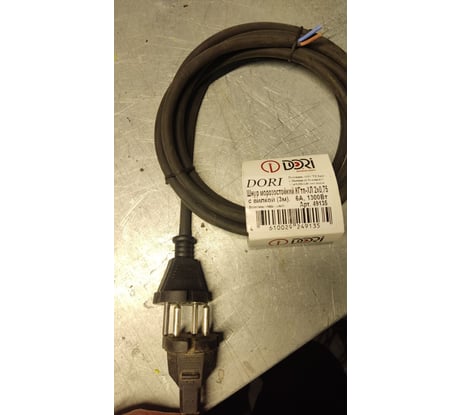 Отзывы о кабеле электрическом морозостойком с вилкой / шнур для электроинструмента (3 м, кгтп-хл 2x0,75 мм2, черный) DORI 49135
