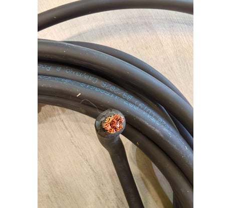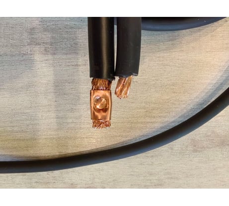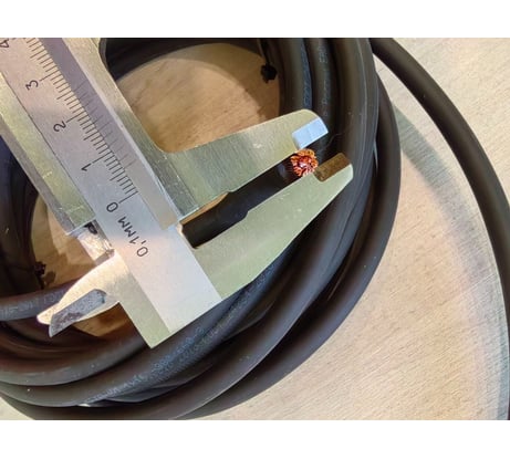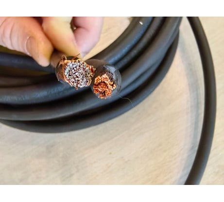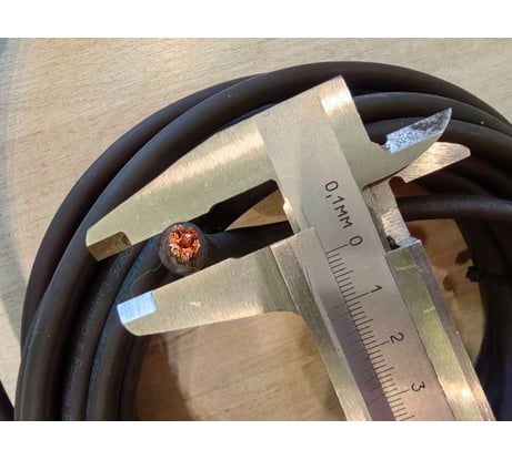 Приобрёл данный кабель для удлинения проводов сварочного аппарата. Длина соответствует заявленной, с учётом возможной погрешности измерений — даже получилось на 10 см больше, чем указано. По сравнению со штатным проводом от САИПА МФ, этот кабель ощущается более плотным и тяжёлым. Стоит отметить, что сечение жилы оказалось тоньше (у этого 5мм, у штатного 7мм), а изоляция — менее гибкой и грубее на ощупь. В холодных условиях (температура -8°C на балконе) кабель не потерял гибкости и остался эластичным, хотя опять же в сравнении со штатным гибкость у этого гибкость хуже. Разделка и зачистка провода прошли без проблем. Для наглядности прикрепил фотографии с точными замерами и сравнением с оригинальным проводом. Для дачных и гаражных работ мне подойдет. Длинны провода хватит и на заземление и на держак с избытком.
