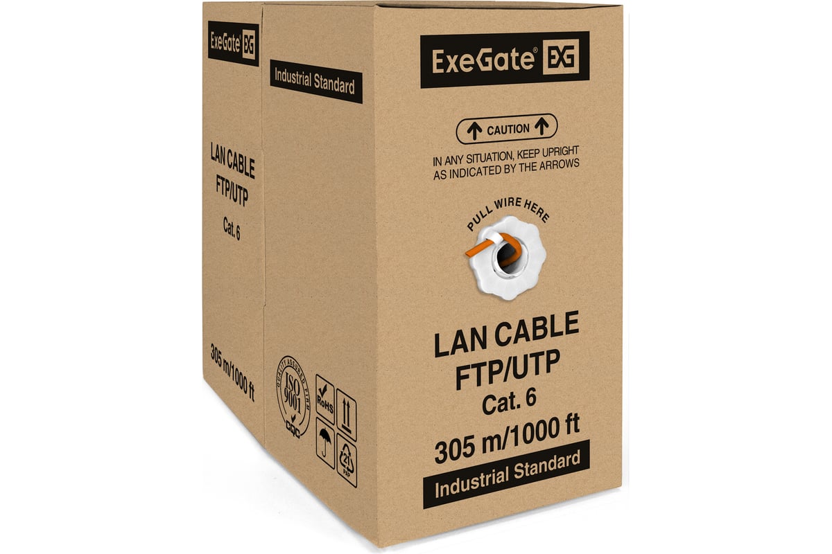 Вопросы и ответы о кабеле ExeGate FTP 4 пары категории 6 медь 23AWG экран бухта 305м оранжевый LSZH 289279