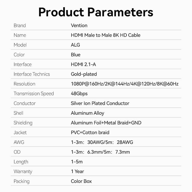 Цифровой кабель новейшего поколения для подключения источника видеосигнала и устройства отображения. Канал Ethernet позволяет нескольким устройствам работать в сети Ethernet без необходимости подключения дополнительных проводов, а также напрямую обмениваться контентом, на скорости до 100 Мбит/сек.. Кабель имеет пропускную способность до 48 Гб/сек, поддерживает разрешение 8K (4320p) Ultra HD, 3D-возможности, Blu-ray, а также поддержку более чем 8 каналов аудио. Наличие обратного канала аудио устраняет необходимость в отдельном проводе для передачи звука в ресивер с телевизора или другого устройства, которое является одновременно источником аудио и видео.