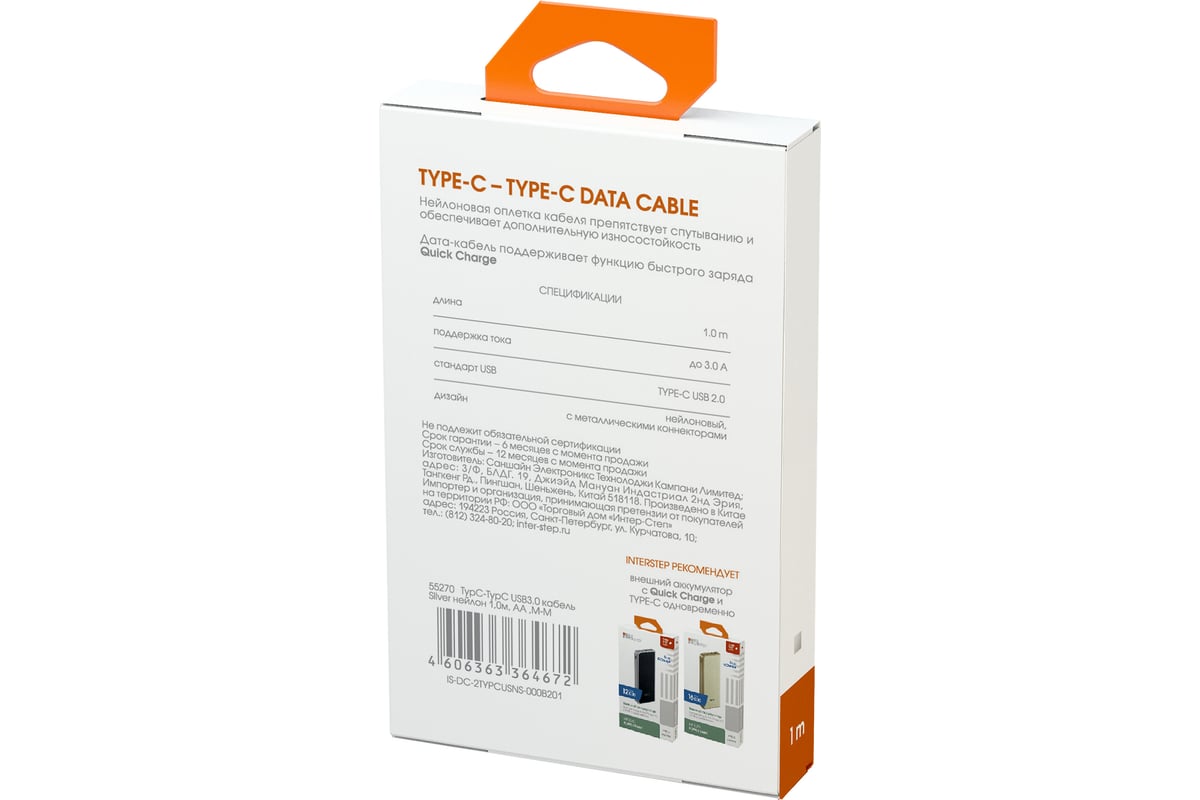 Вопросы и ответы о кабеле Interstep B201 typC-TypC USB2.0 Silver нейлон 1м AA M-M 55270