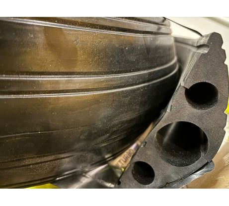 Кабельный протектор TURBOSKY FK-1 — это гибкий резиновый кожух, который надёжно защищает кабели от механических повреждений, влаги и загрязнений, идеально подходящий для использования как в помещениях, так и на открытых площадках, включая стройплощадки, выставки, склады, сцены и производственные зоны. Преимущества данного протектора включают длину 10 метров, что удобно для прокладки протяжённых линий, устойчивость к износу, влаге и перепадам температур, гибкость, позволяющую легко сворачивать его в рулон для хранения и транспортировки, простоту монтажа без использования крепежей, а также оптимальный диаметр отверстия 20 мм, подходящий для большинства промышленных и бытовых кабелей.