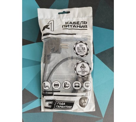 Кабель питания A1 0.6 м., CEE 7/7- С13, 3x0.75 мм², 2200 Вт., черный. A1-PC075-EU-C13-0.6M